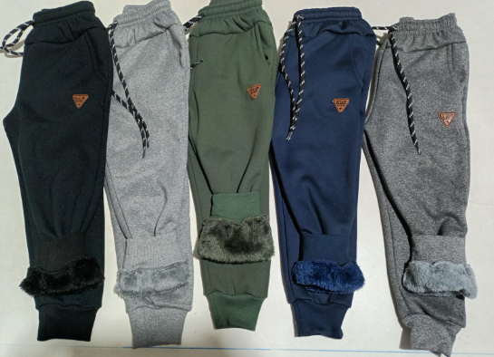 Tela jersey con peluche, talles 4 al 16, colores: gris topo, gris, verde, azul, negro. Talles reales